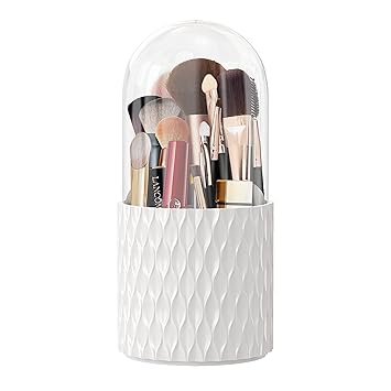 Makeup Brush Holder [2024 Newest] [Dustproof & Waterproof] 360 Rotating Cosmetics Make up Brush Organizer Storage with Lid for Vanity