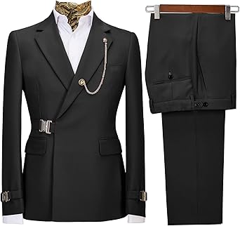 Men's 2 Piece Suit with Metal Clasp Slim Fit Suit Stylish Business & Casual Tuxedo Suit