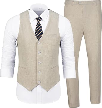 Men's Casual Linen Suit Set 2 Piece Slim Fit Wedding Suits Prom Groomsmen Suit Tuxedos Beach Suits Vest Pants