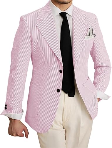 Mens Seersucker Blazer Casual Slim Fit Striped Seersucker Suit Lightweight Jacket 2 Button Blazer Sport Coat