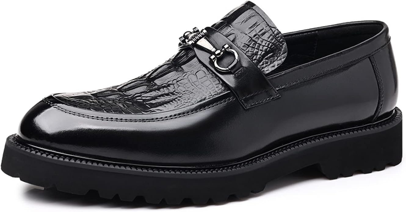 Men's Leather Print Business Oxfords, Smart Casual Formal Office Derby Shoes, Slip-On Wedding Suit Shoes