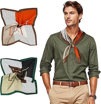 GERINLY Mens Silk Feel Scarf 2 Pack, 27 Inch Neckerchief Ascot, Novelty Head Bandana Wrap
