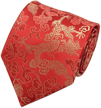 Secdtie Men's Silk Tie Dragon Peony Embroidery Woven Wedding Formal Necktie Gift