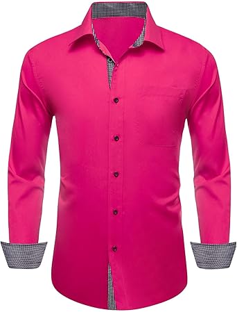 Dubulle Solid Mens Dress Shirt Satin Long Sleeve Business Casual Button Down Shirt with Pocket for Men