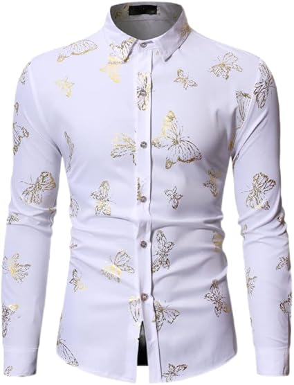 Men Long Sleeve Shirts Dress Shirt Butterfly Print Wedding Groomsmen Prom Party Men Formal Top Slim Fit Clothes
