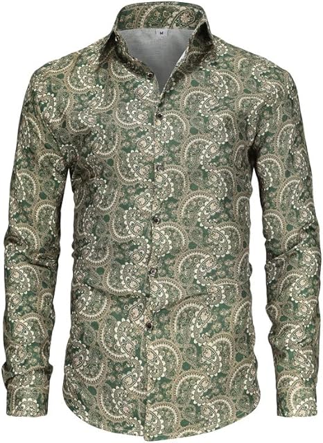 Men's Paisley Button Down Shirt Floral Shirt Disco Long Sleeve Casual Beach Tropical Shirts