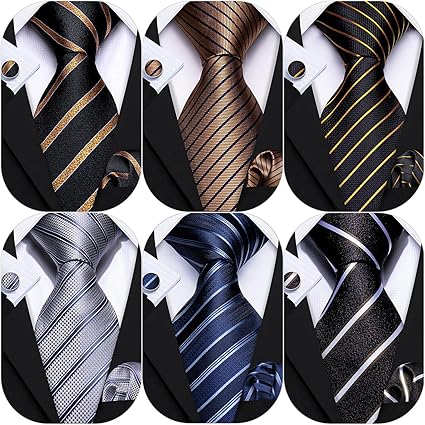 Barry.Wang Men Tie Classic Silk Gift Necktie With Tie Clip Jacquard Woven Neck Ties 6PCS Formal Wedding