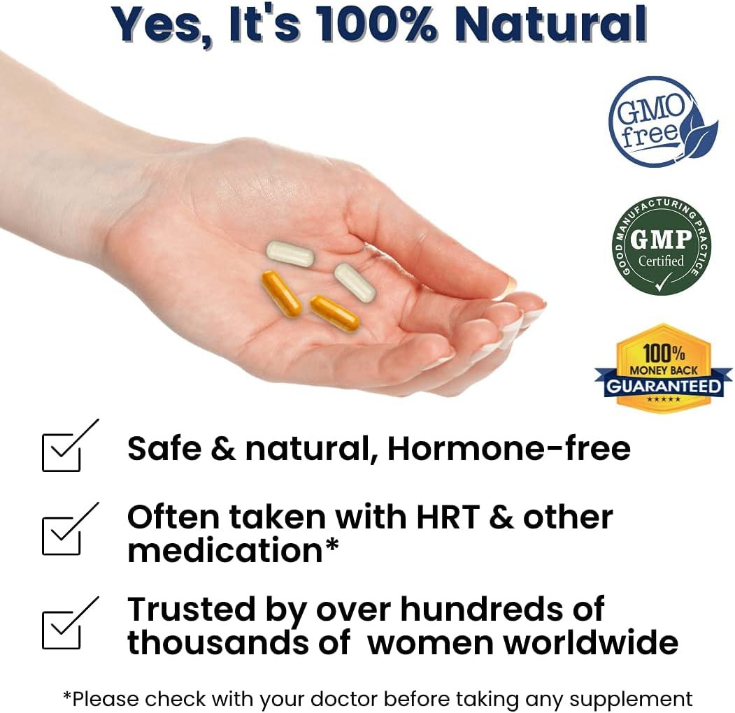 • Hot flash and night sweats relief: Reduce frequency and intensity of hot flashes for better sleep quality.