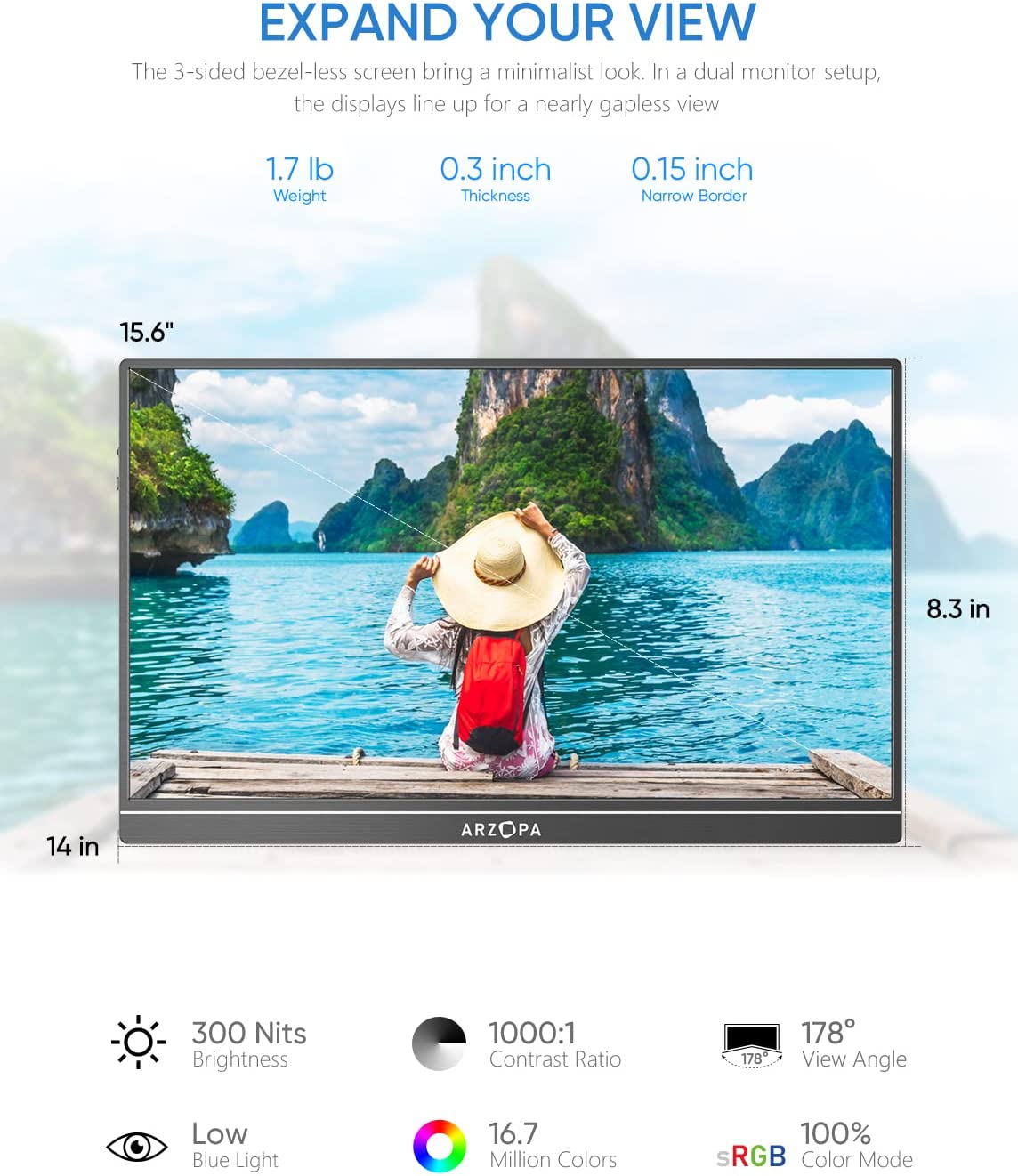 • [Lightweight and Portable] Keeping in mind the portability of the monitor, we havecreated a lightweight and easy to carry screen which weighs 1.7lbs and is 0.3-inch slim.Your work gets done efficiently while you are on the trip.