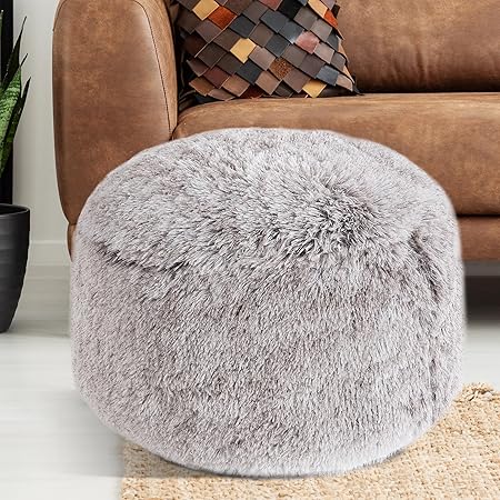 BALAPET Fluffy Pouf Ottoman with Down-Alternative Filling, Stuffed Round Faux Fur Pouf Ottoman Foot Stool, Floor Bean Bag Chair, Foot Rest for Living Room Bedroom, Khaki