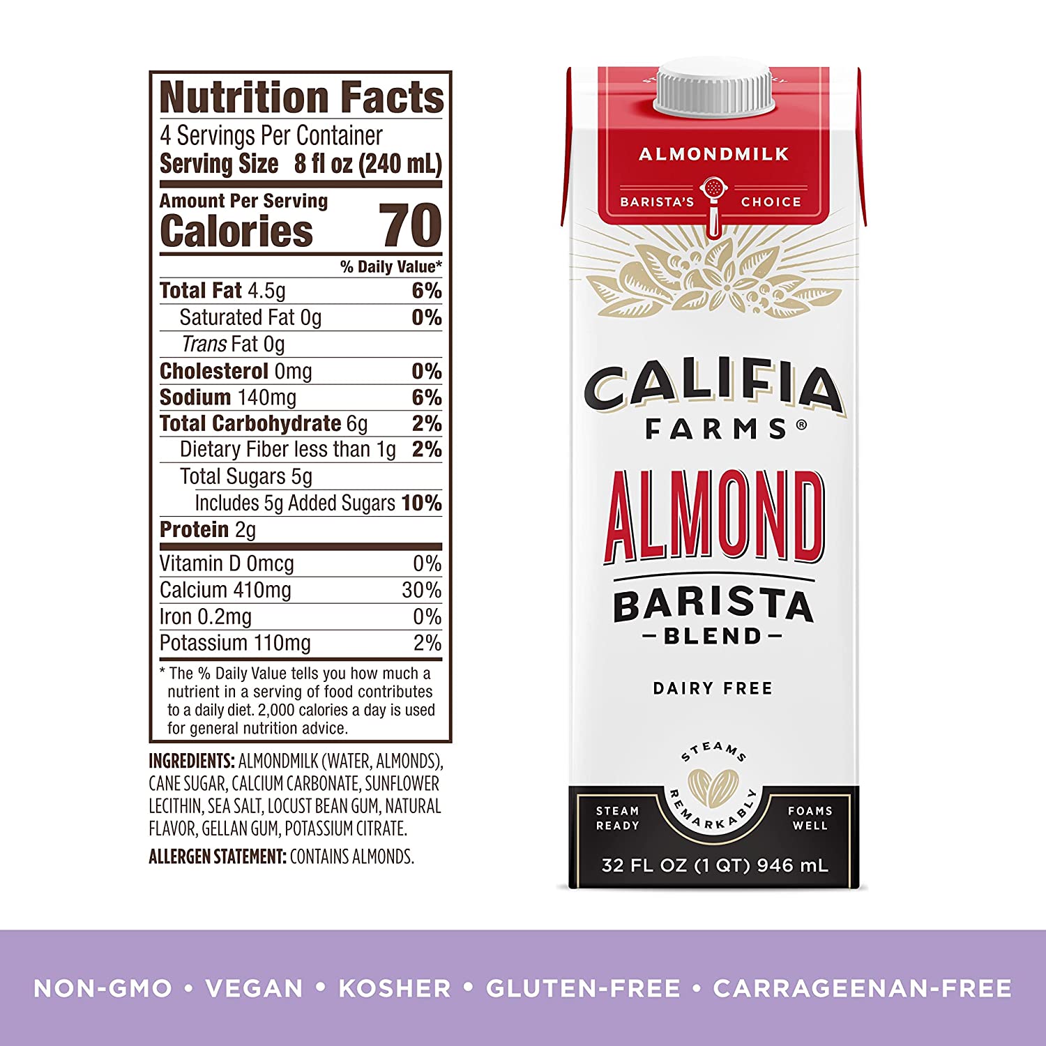 • SIMPLE PLANT-BASED INGREDIENTS: Califia Farms Barista Blends are made with plant-based, dairy-free ingredients that are Non-GMO Certified, Kosher, vegan, and free from carrageenan