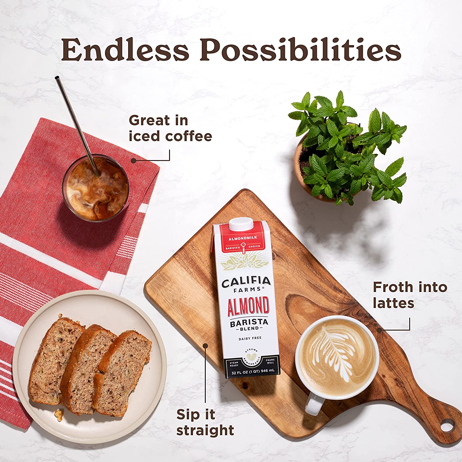 Califia Farms - Original Almond Barista Blend Almond Milk 32 Oz (Pack Of 6), Shelf Stable, Dairy Free, Plant Based, Vegan, Gluten Free, Non GMO, High Calcium, Milk Frother, Creamer