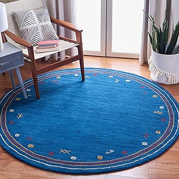 SAFAVIEH Himalaya Collection Area Rug - 4' Round, Blue, Handmade Boho Tribal Wool, Ideal for High Traffic Areas in Living Room, Bedroom (HIM563M)