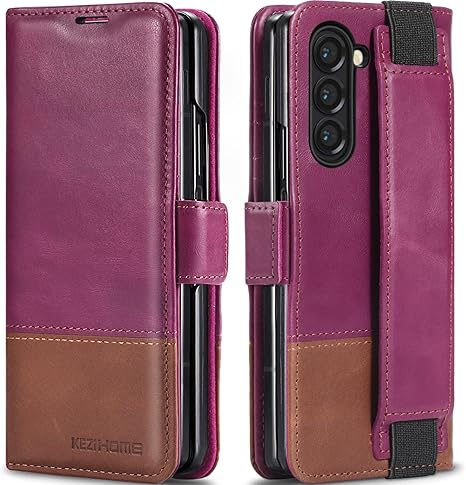 KEZiHOME for Galaxy Z Fold 5 Case, Genuine Leather Wallet Case [RFID Blocking] with Card Holder Kickstand Shockproof Protective Cover Compatible with Samsung Galaxy Z Fold 5