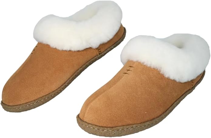 Women Slipper Leather Upper Sheepskin Collar Memory Foam Rubber Soles Indoor Outdoor House Slipper
