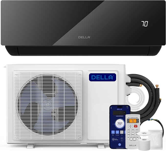 DELLA Umbra Series 9000 BTU Wifi Mini Split AC Works with Alexa 19 SEER2 Cools Up to 450 Sq.Ft with Heat Pump Pre-Charged Energy Saving Ductless Inverter System (R32 refrigerant)