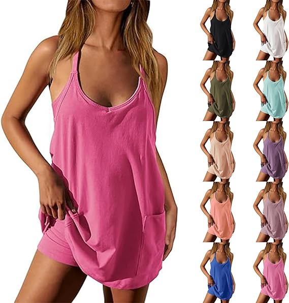 Womens Tennis Dress Athletic Workout Dress with Built in Shorts Adjustable Straps Mini Golf Dresses with Pockets