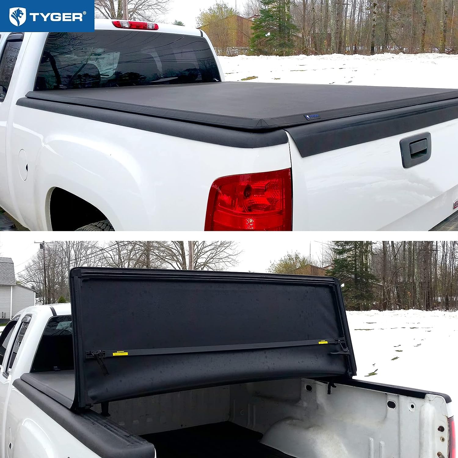 Tyger Auto T3 Soft Tri-Fold Truck Bed Tonneau Cover Compatible with 2007-2013 Chevy Silverado / GMC Sierra 1500; 2007-2014 2500 HD 3500 HD | Fleetside 6'6" Bed (78") | TG-BC3C1004 , Black