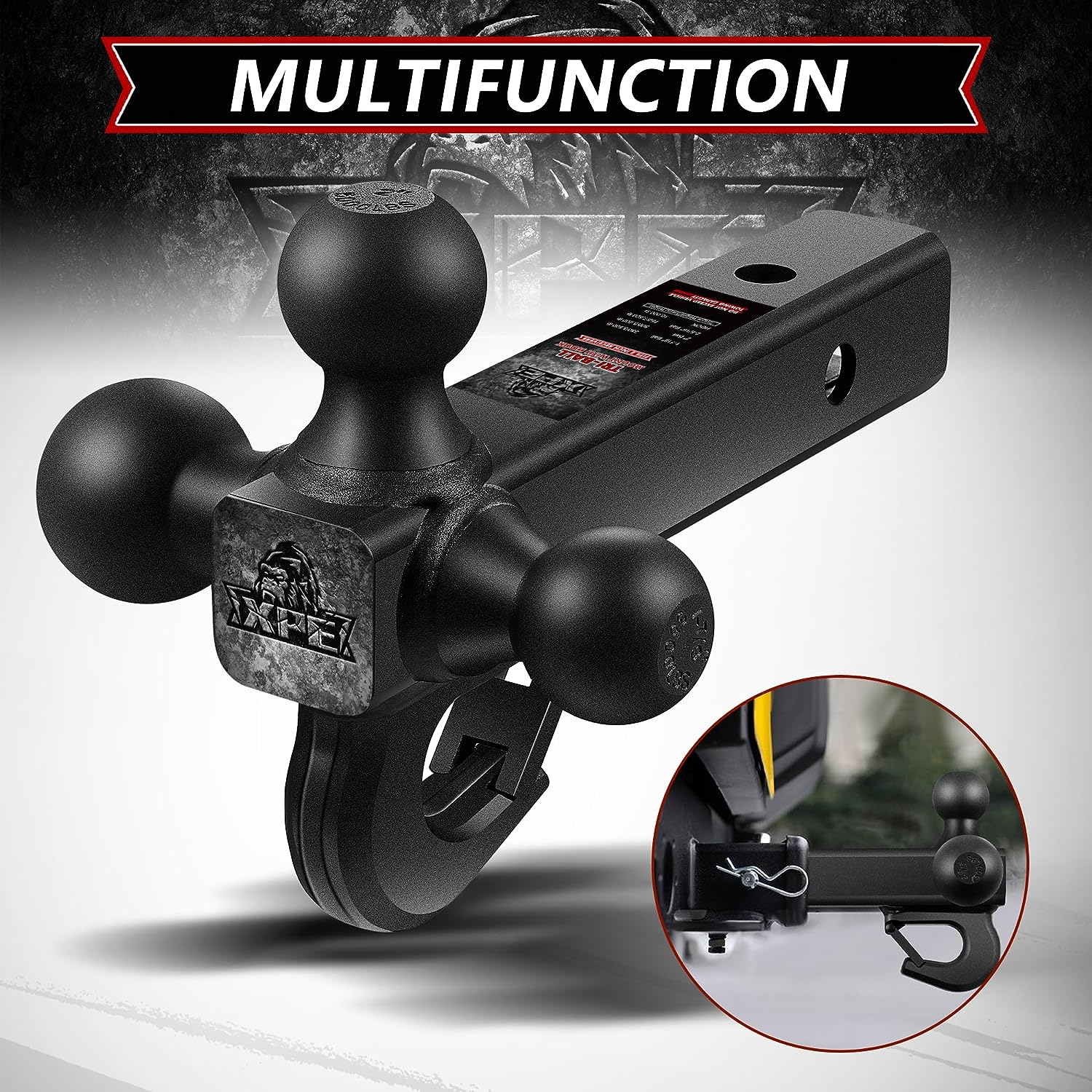 XPE Trailer Hitch Tri Ball Mount with Hook,Fits 2” Hitch Receiver,1-7/8", 2"& 2-5/16"Matt Black Plated Balls,Secure with Self-Lock Latch, 10,000 LBS GTW,for RV,SUV, ATV and Truck etc