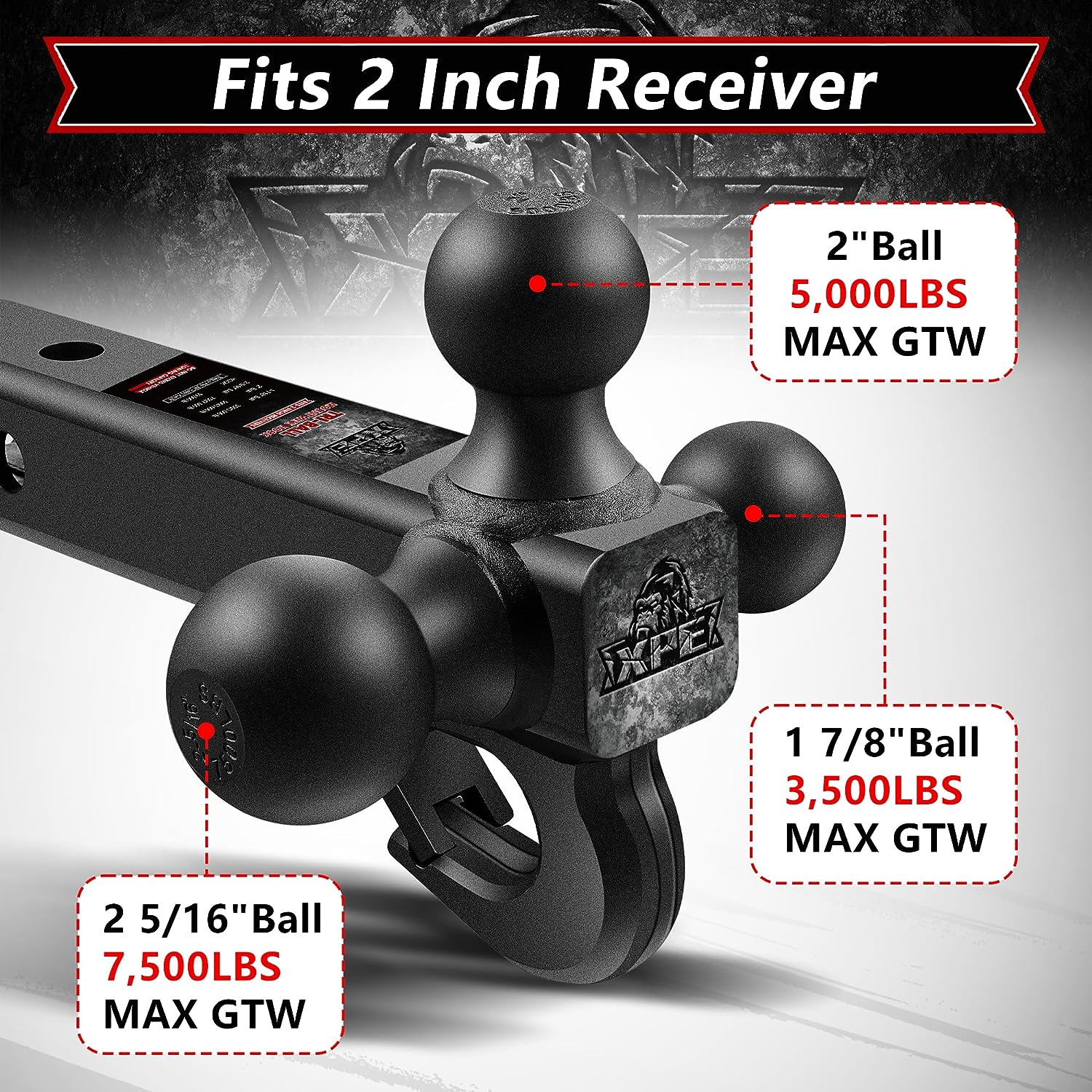 • 🚀MULTIPLE CHOICES :The 3 Ball Tow Hitch provides three different options are available :1-7/8 inch- GTW 3,500LBS; 2 inch - GTW 5,000LBS; 2-5/16 inch - GTW 7,500LBS; and with a Hook - GTW 10,000LBS added versatility and convenience,which to meet different needs.