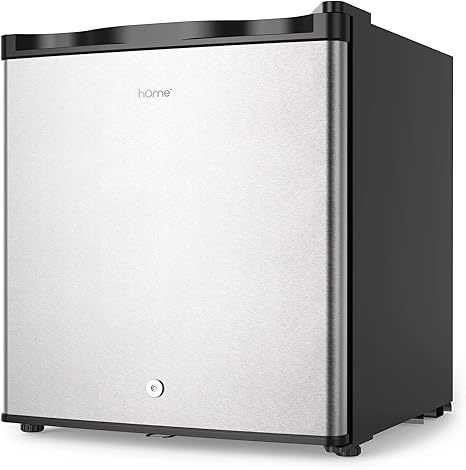 hOmelabs Upright Freezer - 1.1 Cubic Feet Compact Reversible Single Door Vertical Freezer with Child Door Lock - Table Top Mini Freezing Machine with Removable Shelves for Office Dorm or Apartment