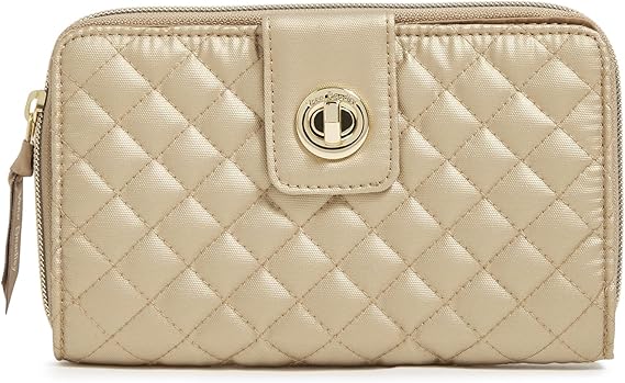 Vera Bradley Women's Cotton Turnlock Wallet With RFID Protection, Champagne Gold Pearl, One Size