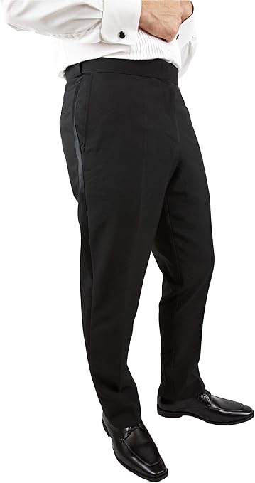Sir Gregory Men's Fitted Flat Front Tuxedo Pants Formal Satin Stripe Trousers with Expandable Waistband