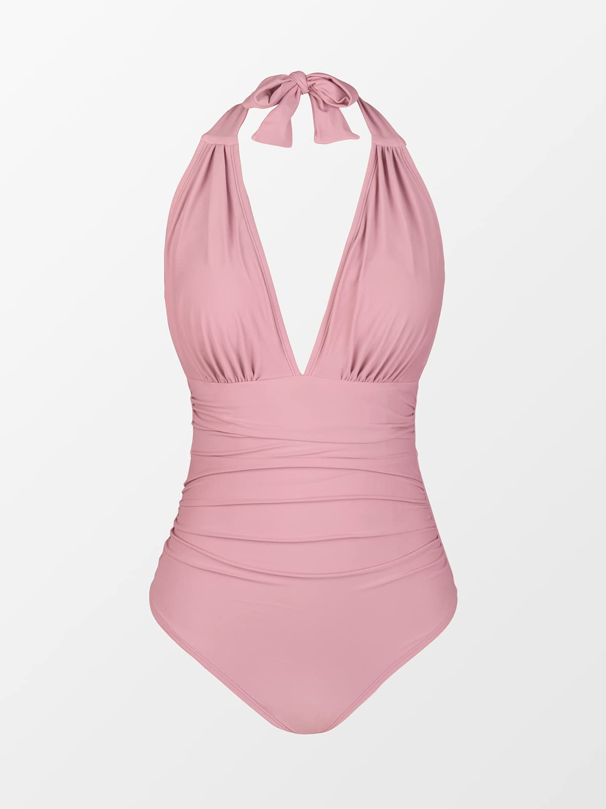 • Design: Our Dusty Pink Plunge Halter Tummy Control One Piece Swimsuit Looks Great on Everybody! This Bathing Suit Features A Deep V-neck, Ruching Details at the Front and Padded Cups for Extra Support