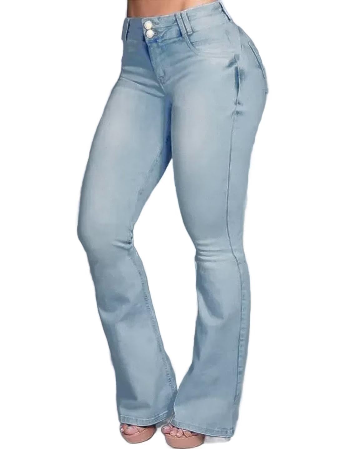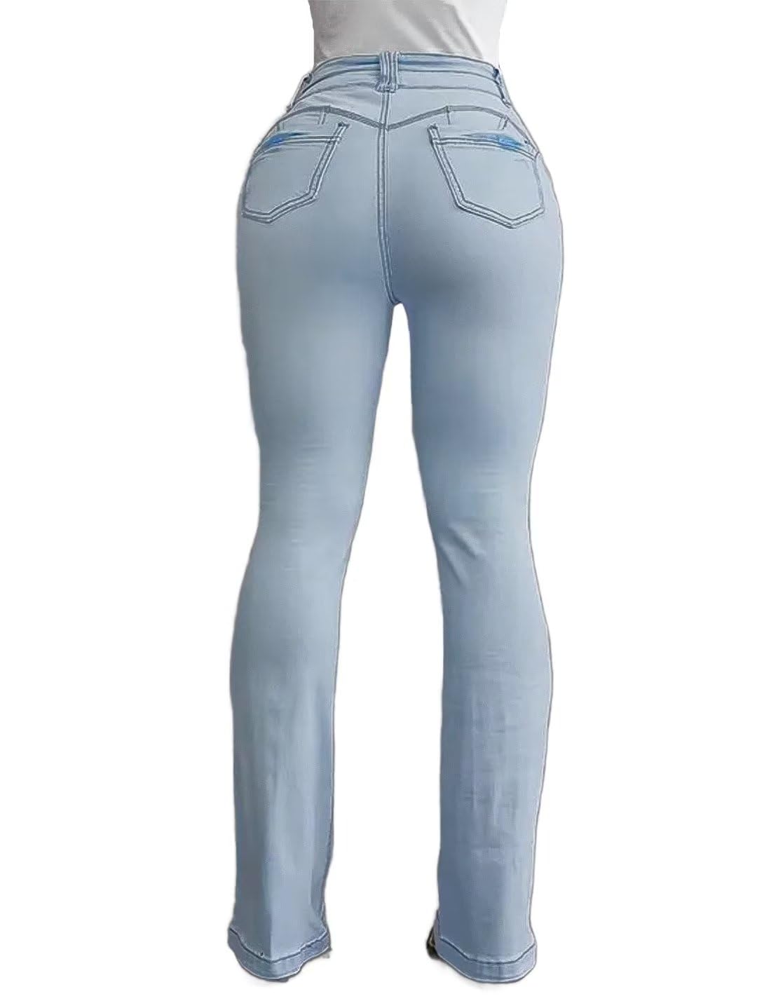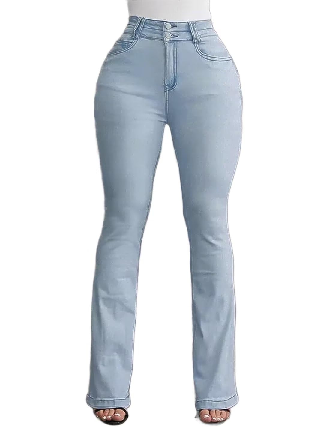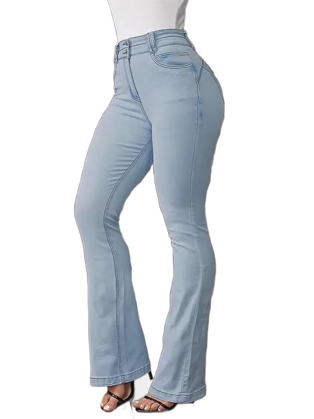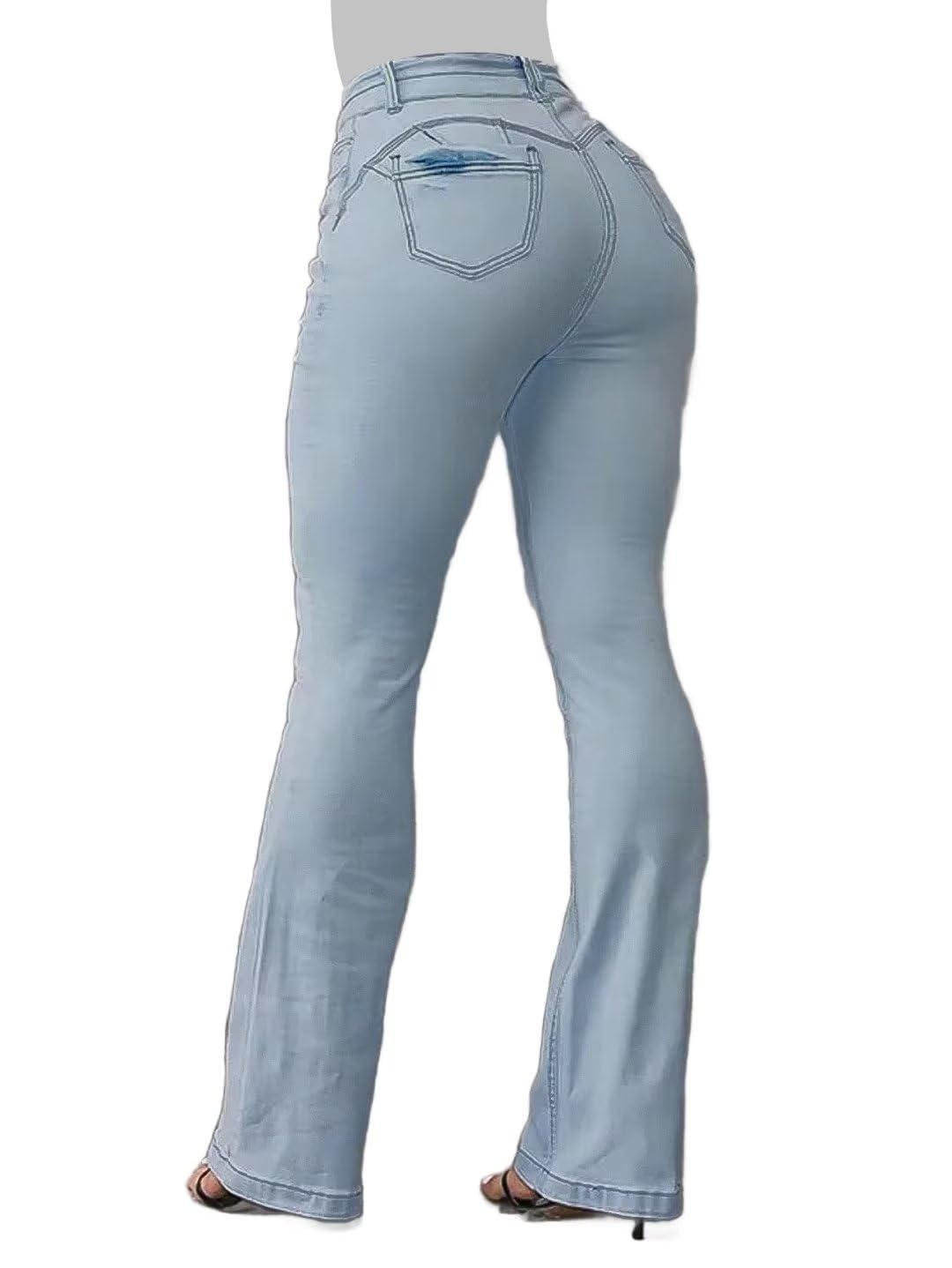 Flamingals Jeans for Women Booty Shaping Stretch Curvy Flare Leg Tummy Control Bleach Blue
