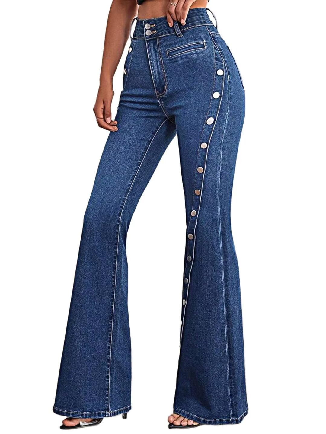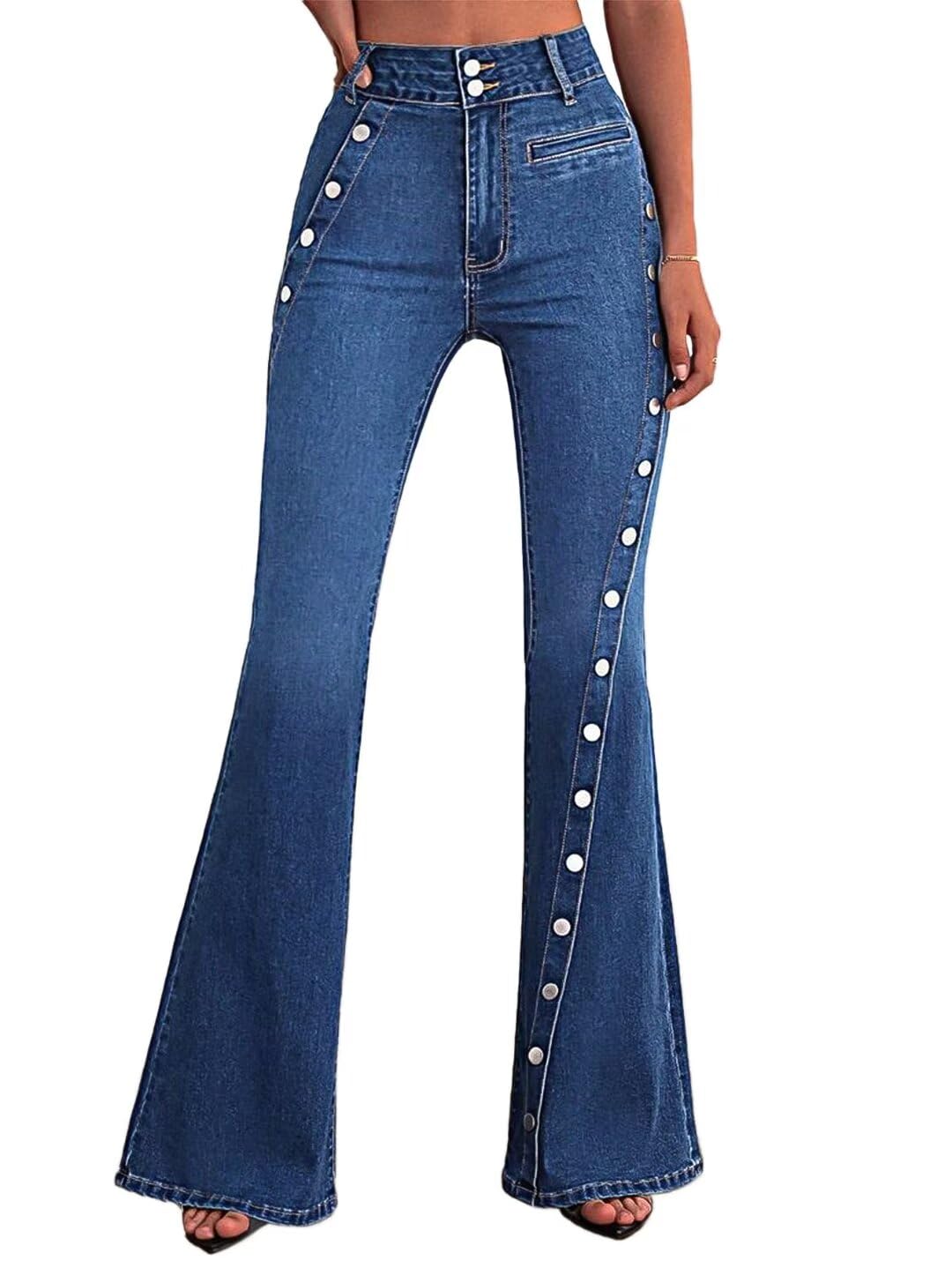 • Features: Introducing our stylish jeans that feature a flare leg design, high waist, button, pocket, and zipper details, all made with high stretch fabric for maximum comfort and flexibility. These versatile jeans are perfect for off-duty days and beyond, offering a flattering fit that enhances your appearance and showcases your unique personality. Upgrade your wardrobe with these trendy and comfortable jeans that are sure to make a statement wherever you go.