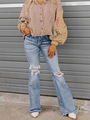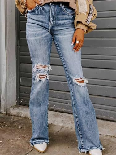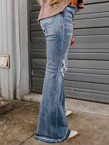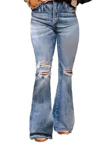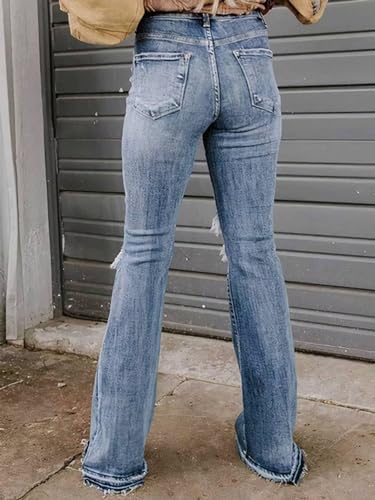 Flamingals Women's Ripped Flare Jeans for Women High Waist Distressed Bell Bottom Jeans Light Blue S
