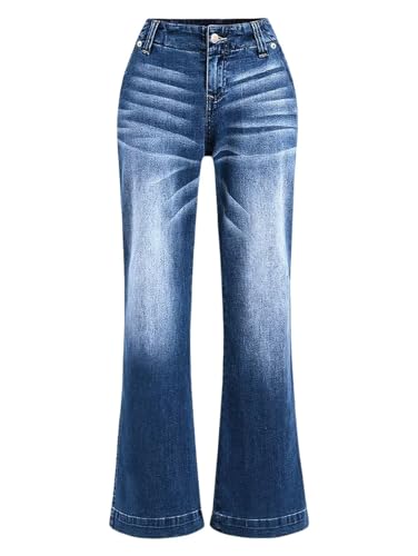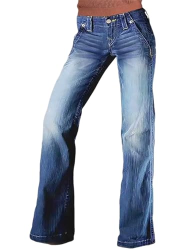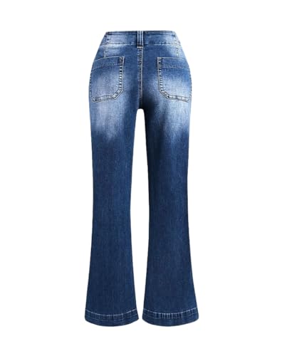 Flamingals Women's Slant Pocket Button Detail Flare Jeans Low Waist Casual Pants Navy Blue L