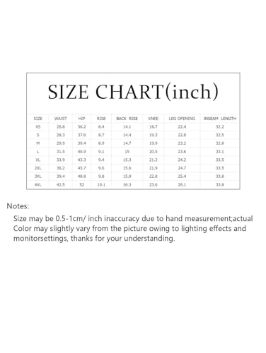 • Size Chart: x-small:Waist:26.8",Hip:36.2",Inseam length:32.2". small:Waist:28.3",Hip:37.8",Inseam length:32.5". medium:Waist:29.9",Hip:39.4",Inseam length:32.8". large:Waist:31.5",Hip:40.9",Inseam length:33.1". x-large:Waist:33.9",Hip:43.3",Inseam length:33.5". xx-large plus:Waist:36.2",Hip:45.7",Inseam length:33.5". 3x-large plus:Waist:39.4",Hip:48.8",Inseam length:33.8". 4x-large plus:Waist:42.5",Hip:52",Inseam length:33.8".