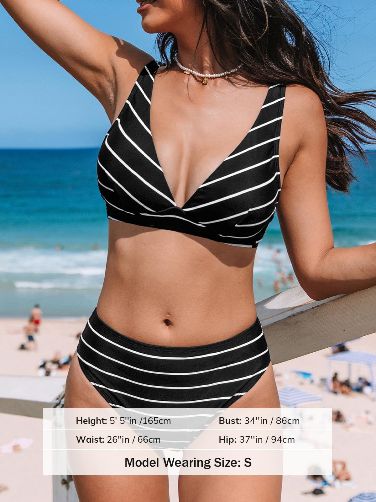 • Design: Introducing our classic stripe bikini sets. The v neck style, adjustable straps, and removable soft cups provide a flattering fit with medium bust support. Paired with the matching high waisted bottoms, you get an effortlessly chic and sophisticated beach look.