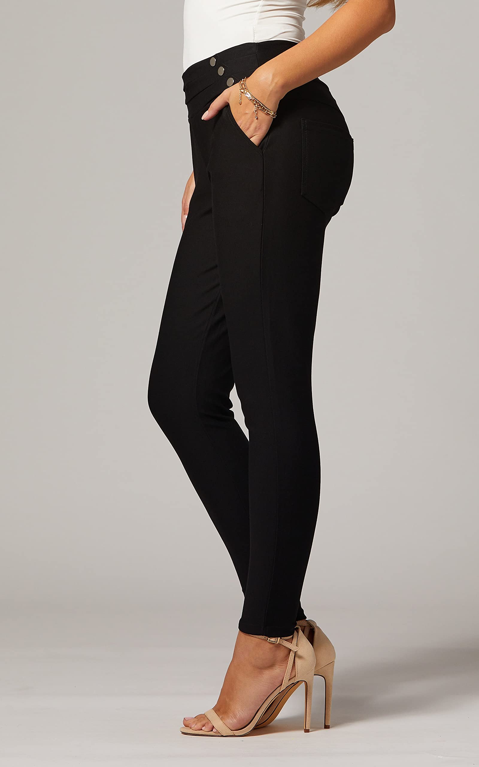 Conceited Black Premium Women's Stretch Ponte Pants - Wear to Work - Dressy Leggings - Large - MS-3005-L