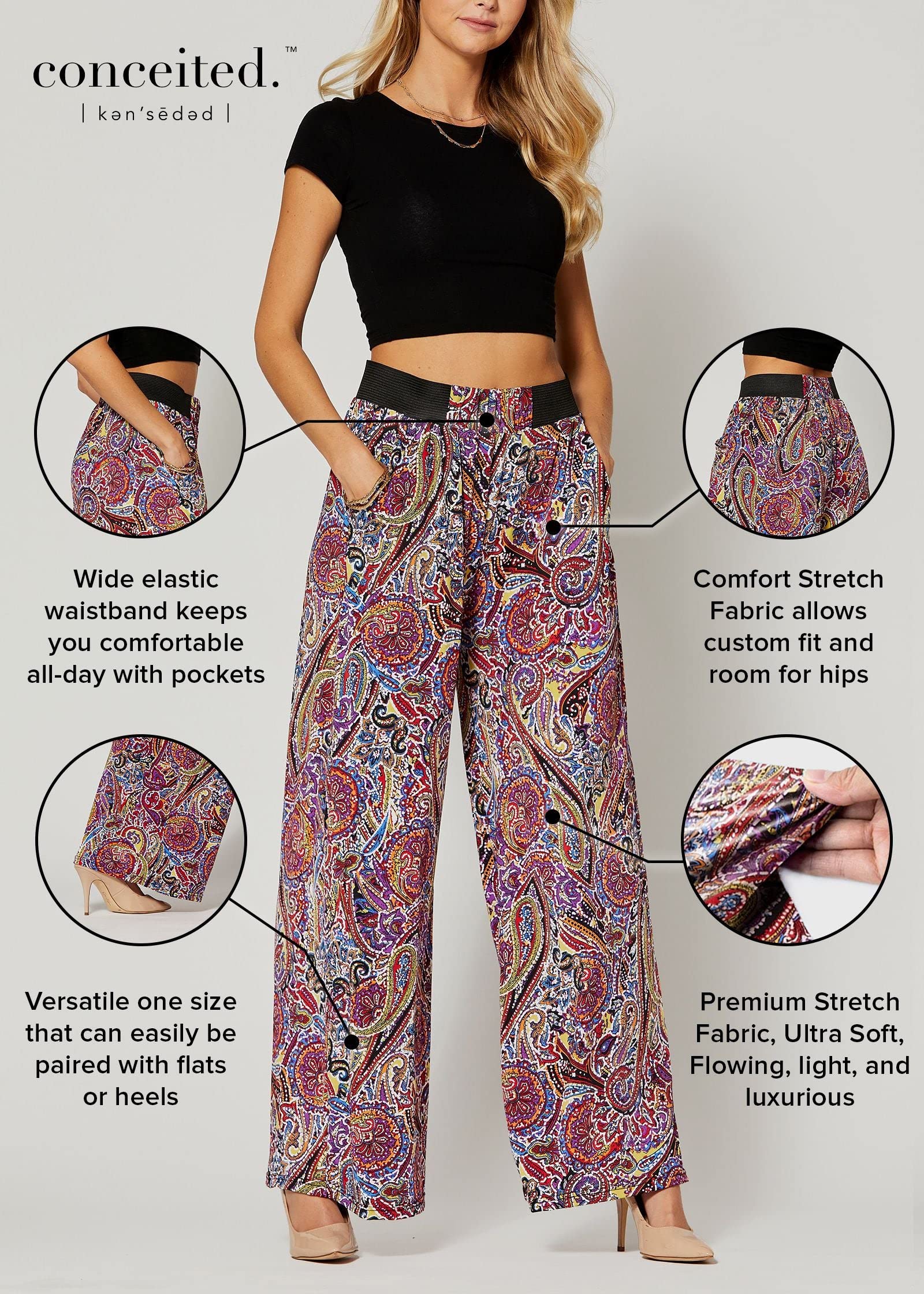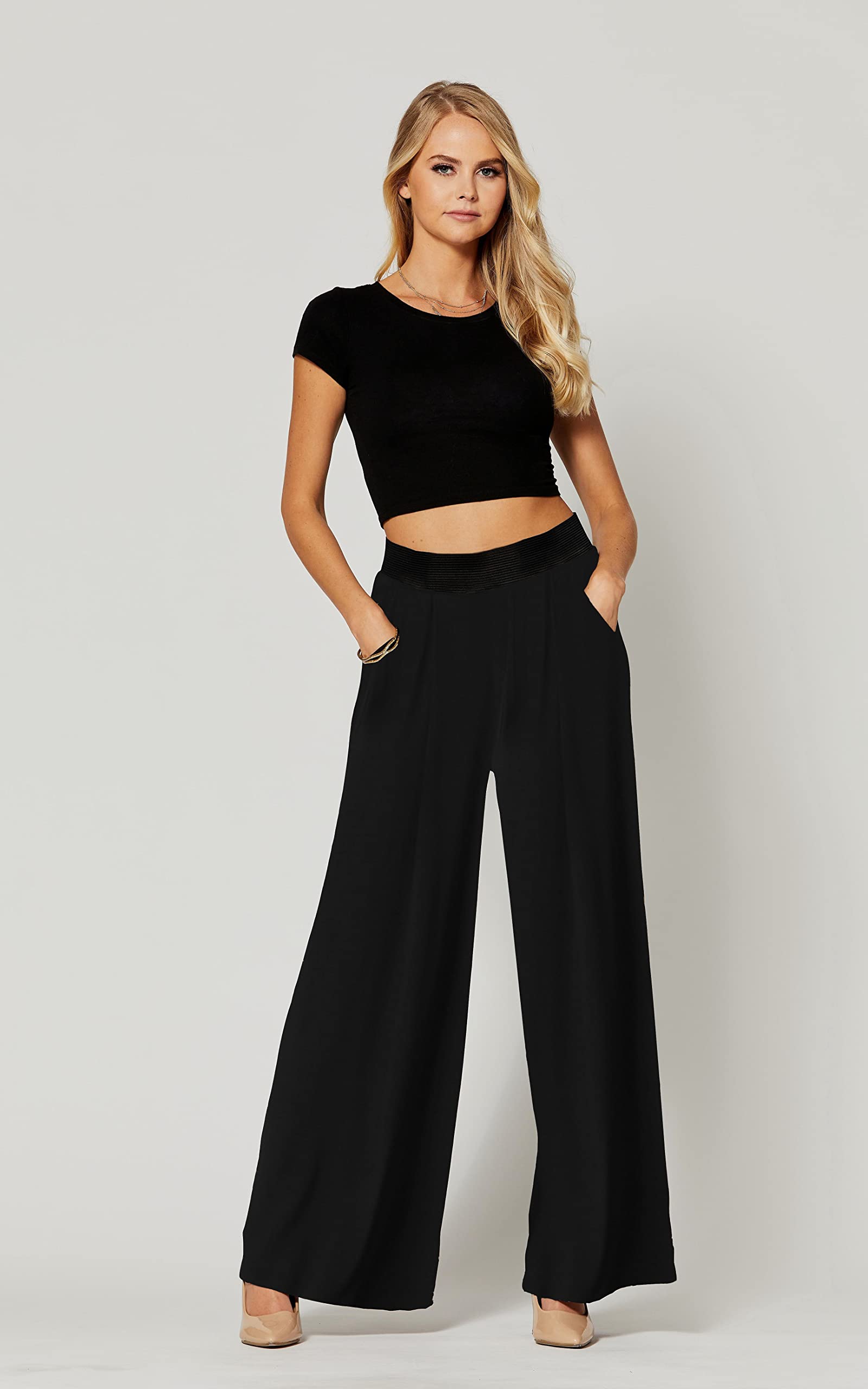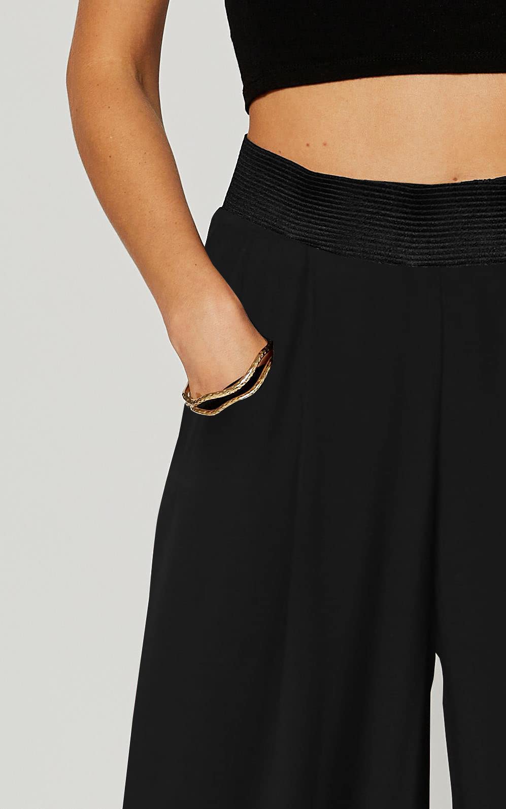 Conceited Palazzo Pants with Pockets for Women - High Waisted Wide Legged - Solid Black - One Size - 715854664499