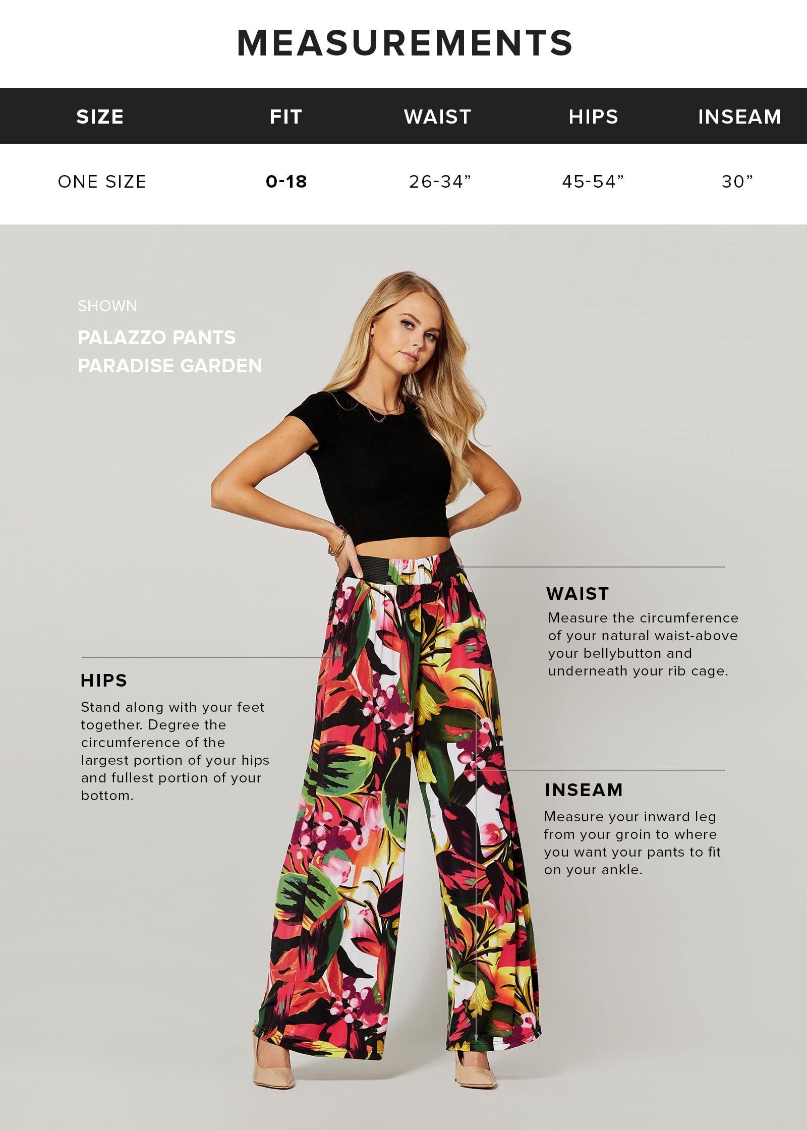 • Offered in a One Size that fits from 0-18, waist 24-36 inches with an inseam of 30 inches.