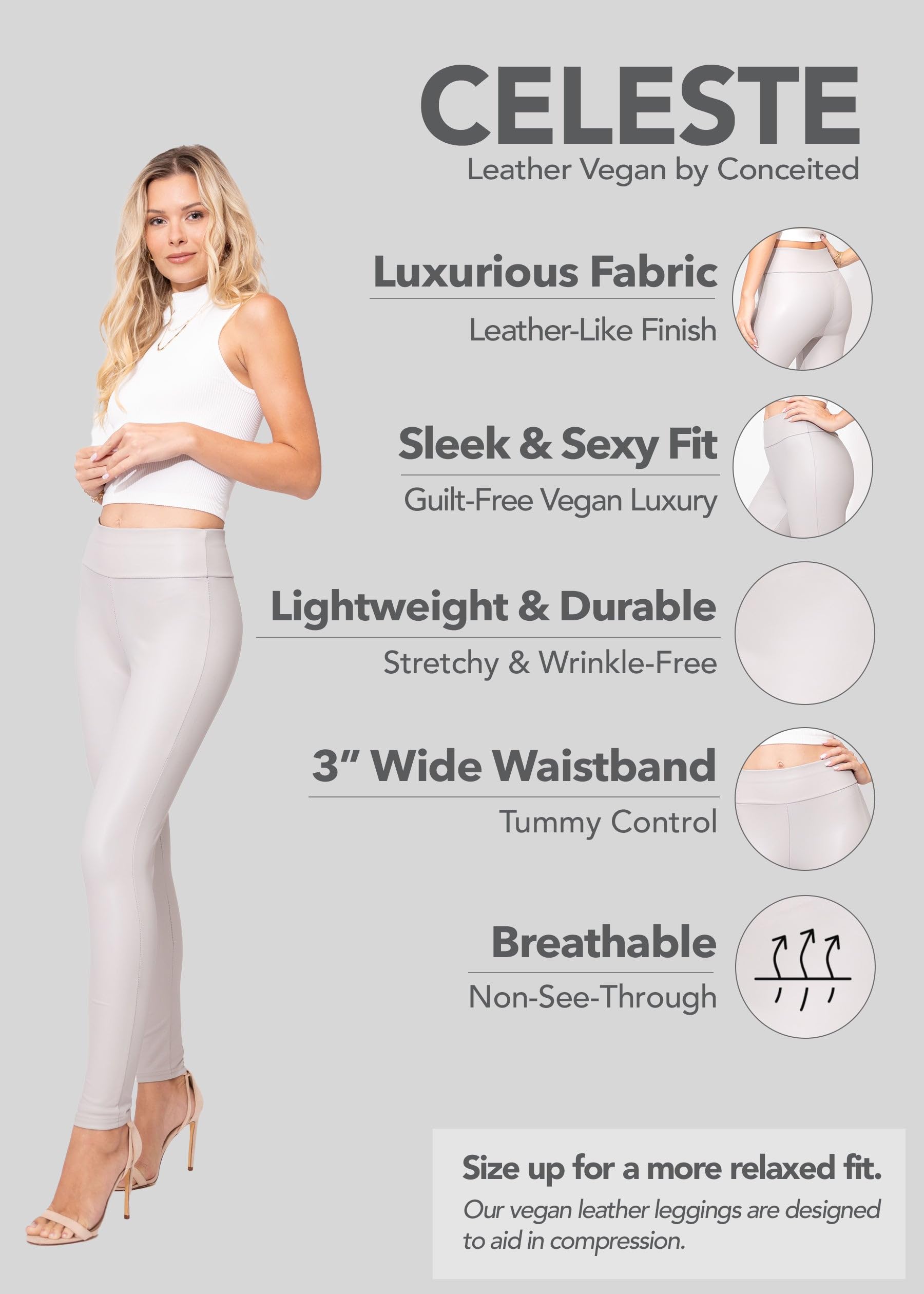 • Flattering Fit: High-waisted, butt shaping, and tummy control benefits, our leggings offer a sleek, modern silhouette. Achieve the sexy fit of leather leggings with the breathable, non-see-through stretchy fabric of faux leather leggings for women.