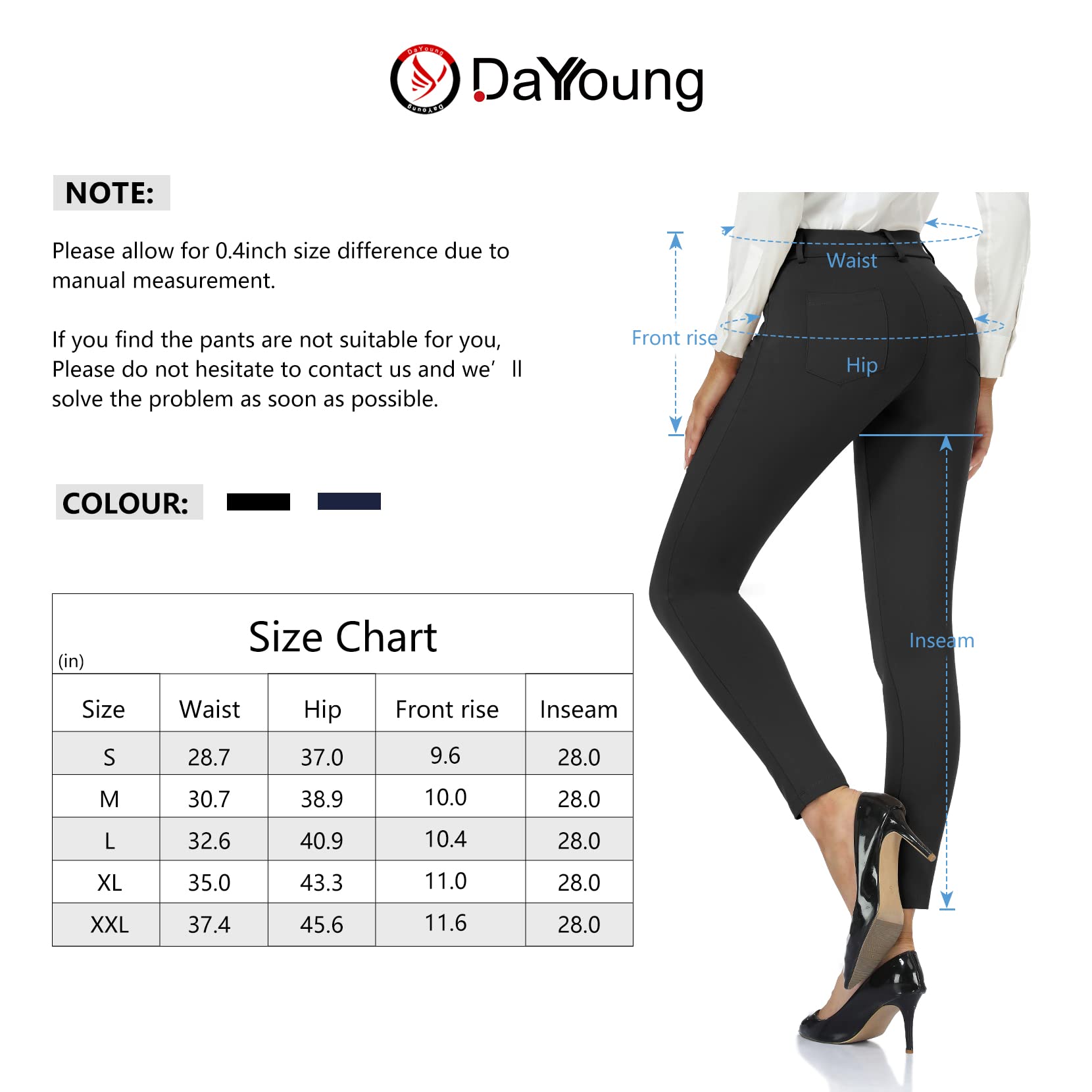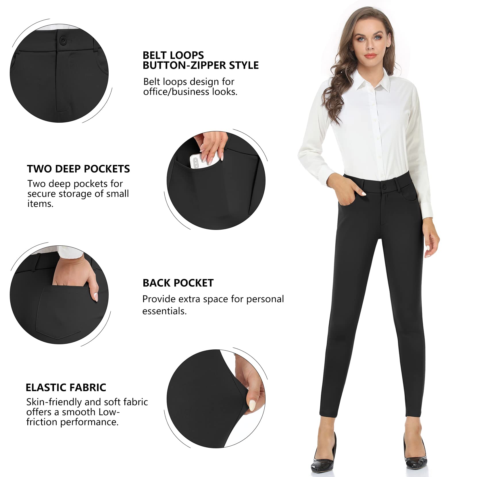 DAYOUNG Women Dress Pants Work Office Business Casual Slacks Stretchy Skinny Leg Yoga Pants with Pockets Y77-Black-M