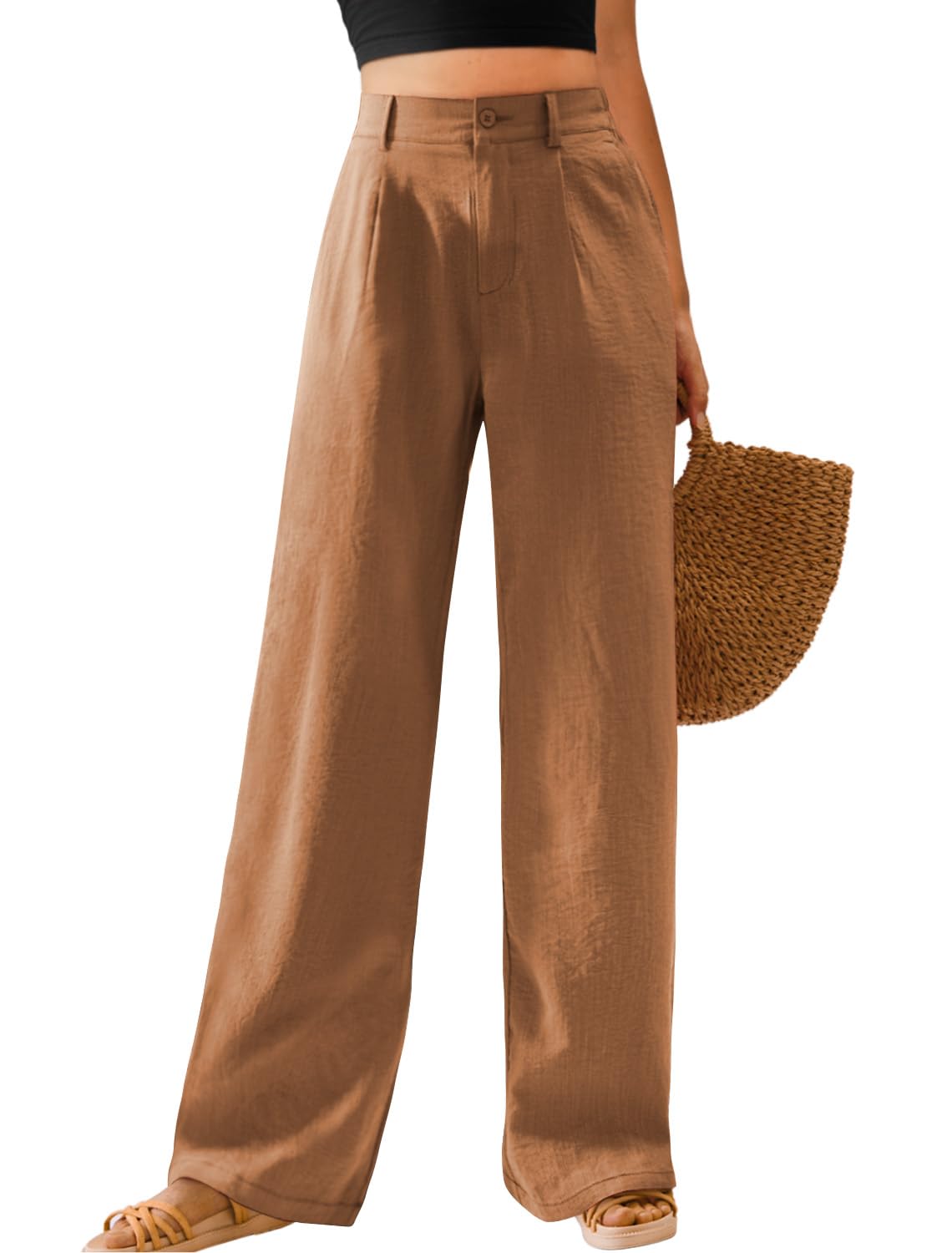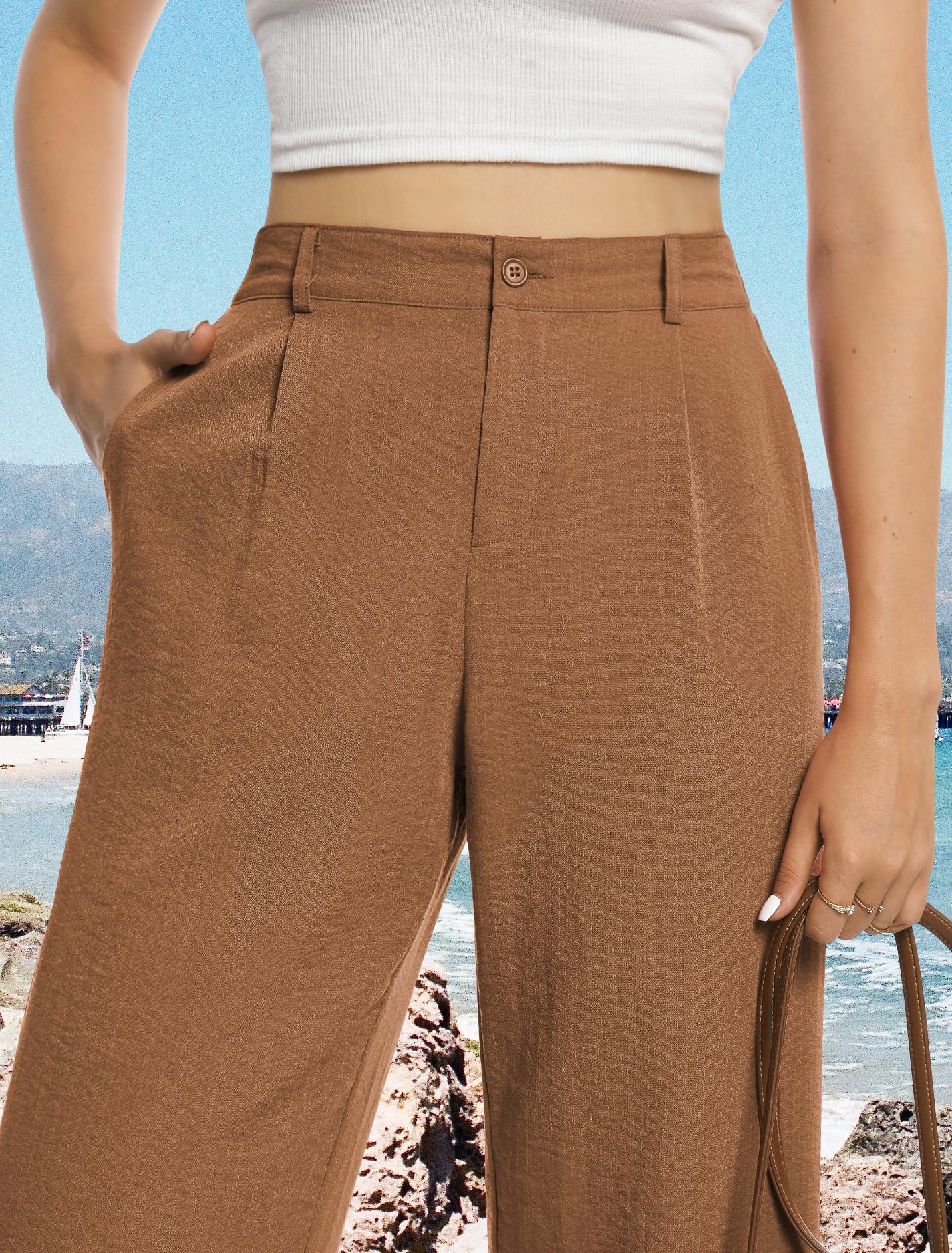 Feiersi Womens Casual Wide Leg Pants High Waisted Button Down Straight Long Trousers Palazzo Pants(Brown,Small)