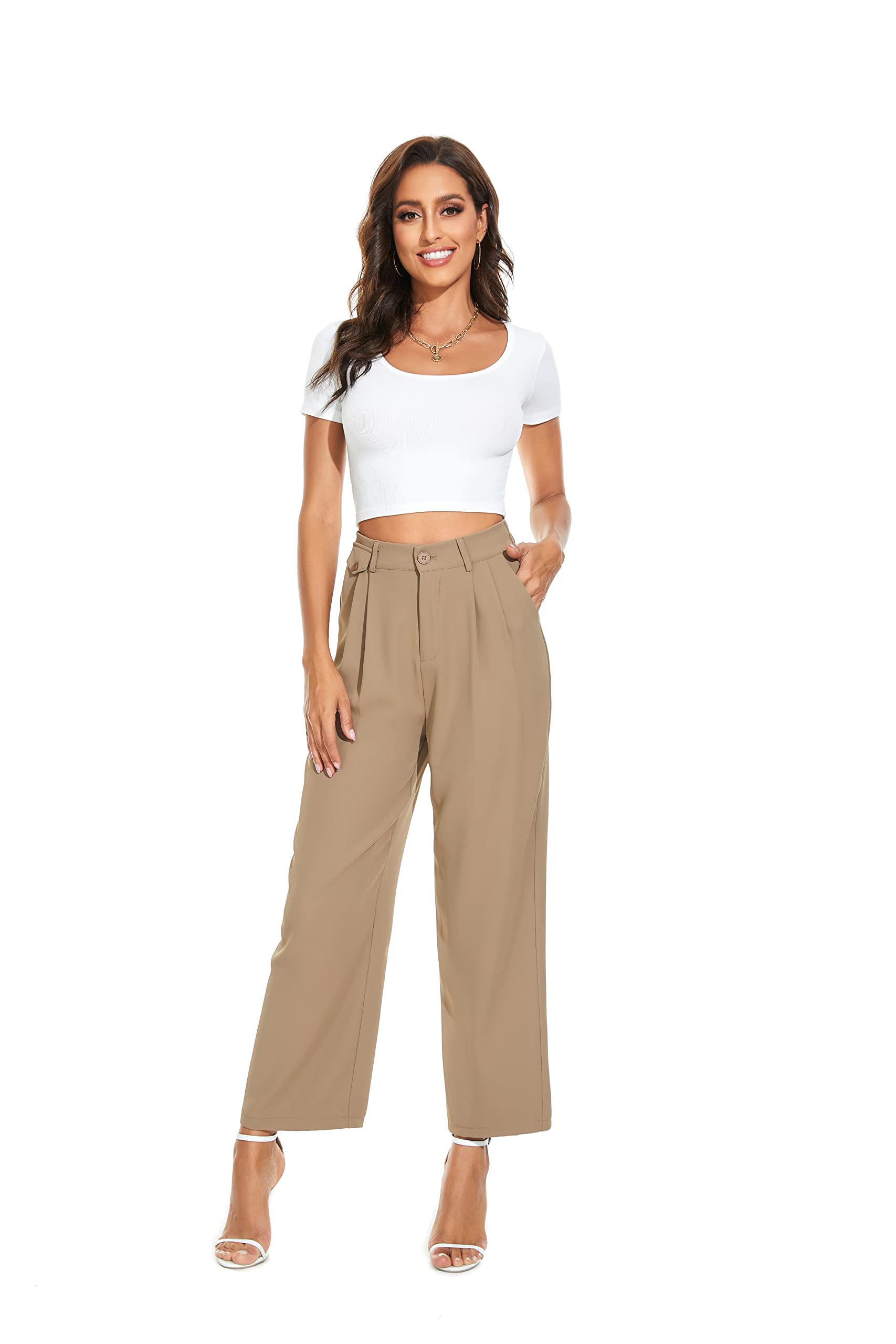 • FEATURE -- lightweight fabrics, straight leg style, high waist, pleated front, loose fit