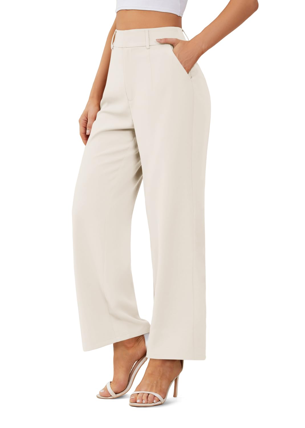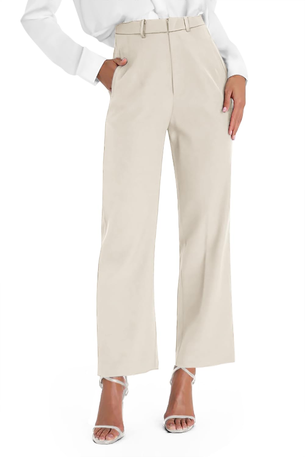 onlypuff Womens Petite Trousers High Waisted Business Pants for Women Palazzo Dress Capris Beige M