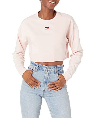 Tommy Hilfiger Women's Long Sleeve Logo Pullover Sweatshirt, Rosewater, Small