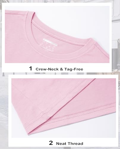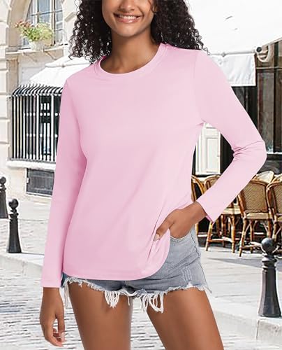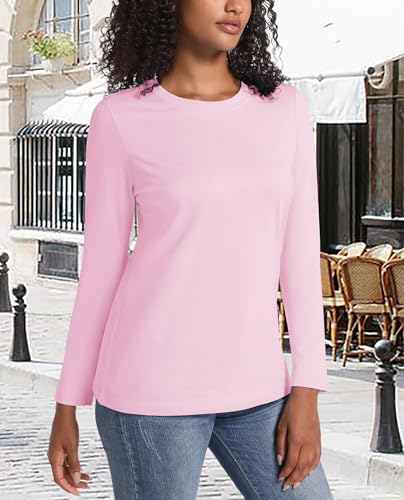 MAGCOMSEN Womens Cotton Tee Crew-Neck Long-Sleeve Classic-Fit Breathable Soft Tops Casual Solid All-Season Basic T-Shirt, Light Pink, M