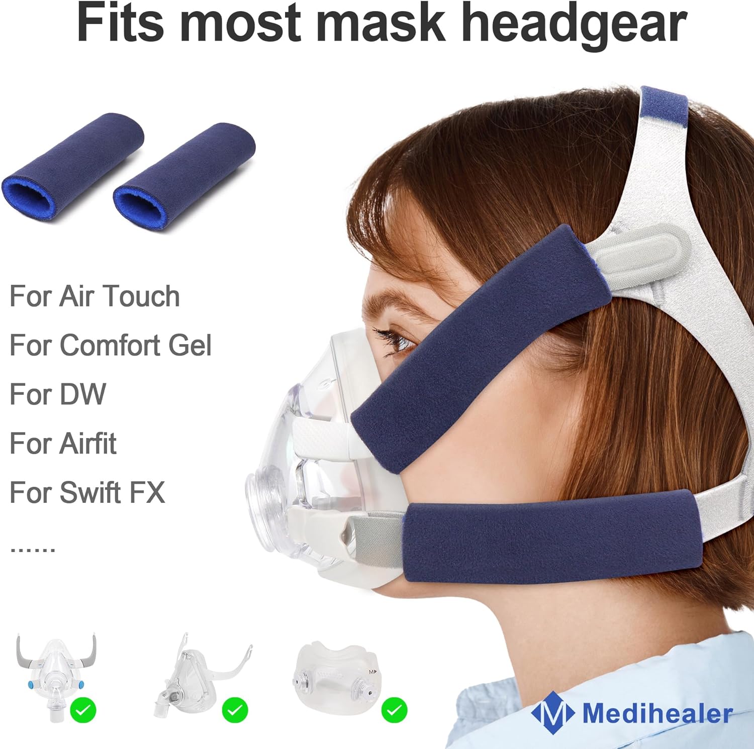 8 Pack CPAP Headgear Strap Covers, Universal and Reusable CPAP Strap Covers, Soft-Fleece Strap Pads for Reduce Red Marks, Great Value Kit Supplies by Medihealer