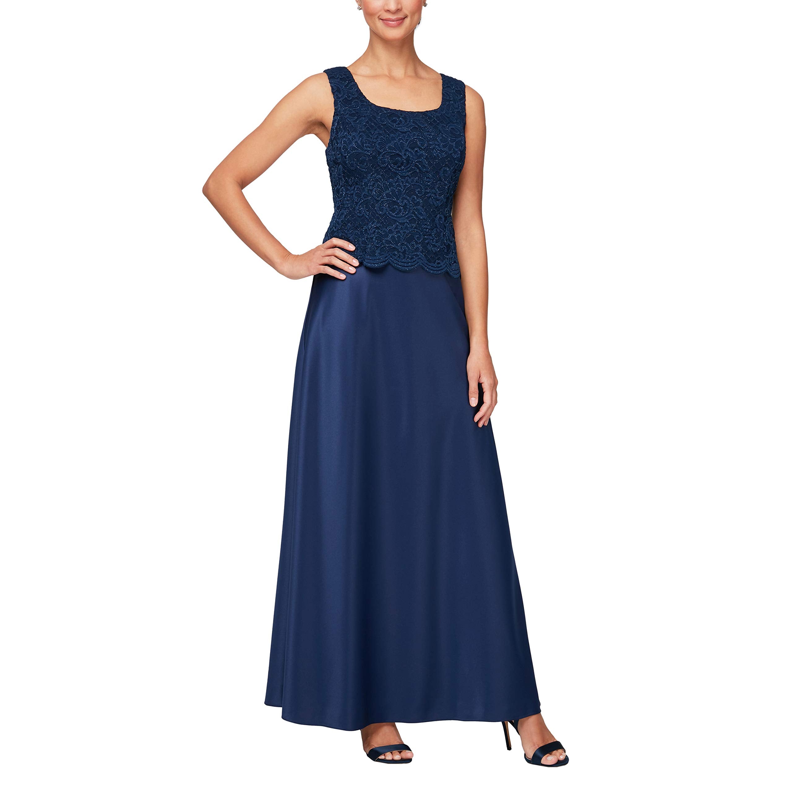 Alex Evenings Women's Plus Size Long A-Line Mock Dress with Jacket, Navy, 14W
