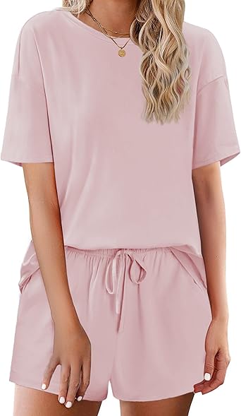 Ekouaer Cotton Pajamas Set for Womens Soft Short Sleeve Lounge Set Shorts Sleepwear Set 2 Piece Pjs Sets