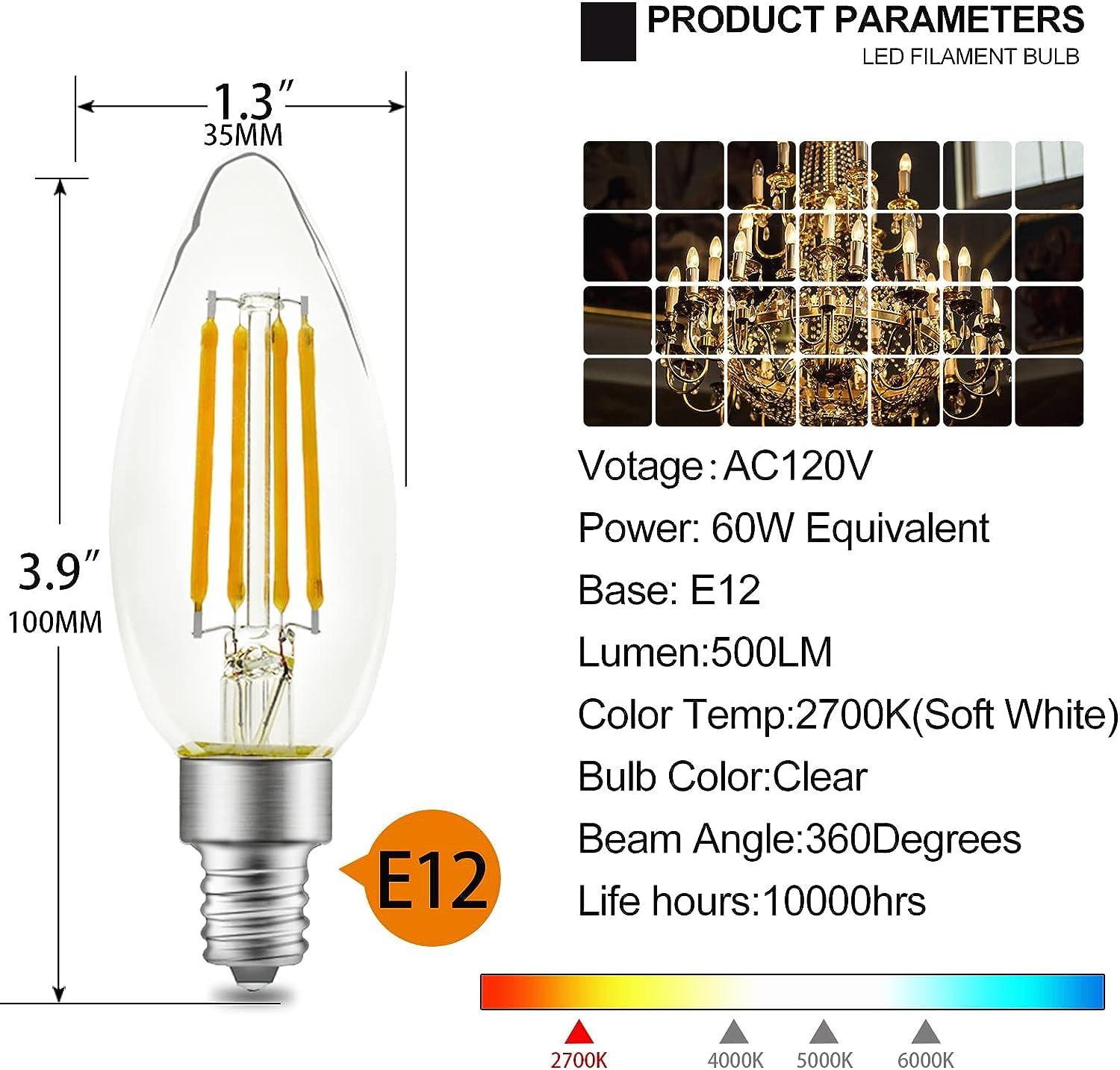• ?【Easy to Install】This candelabra LED lights are suitable for chandeliers, pendant lighting, sconces or any general purpose application with a E12 screw canelabra base socket.