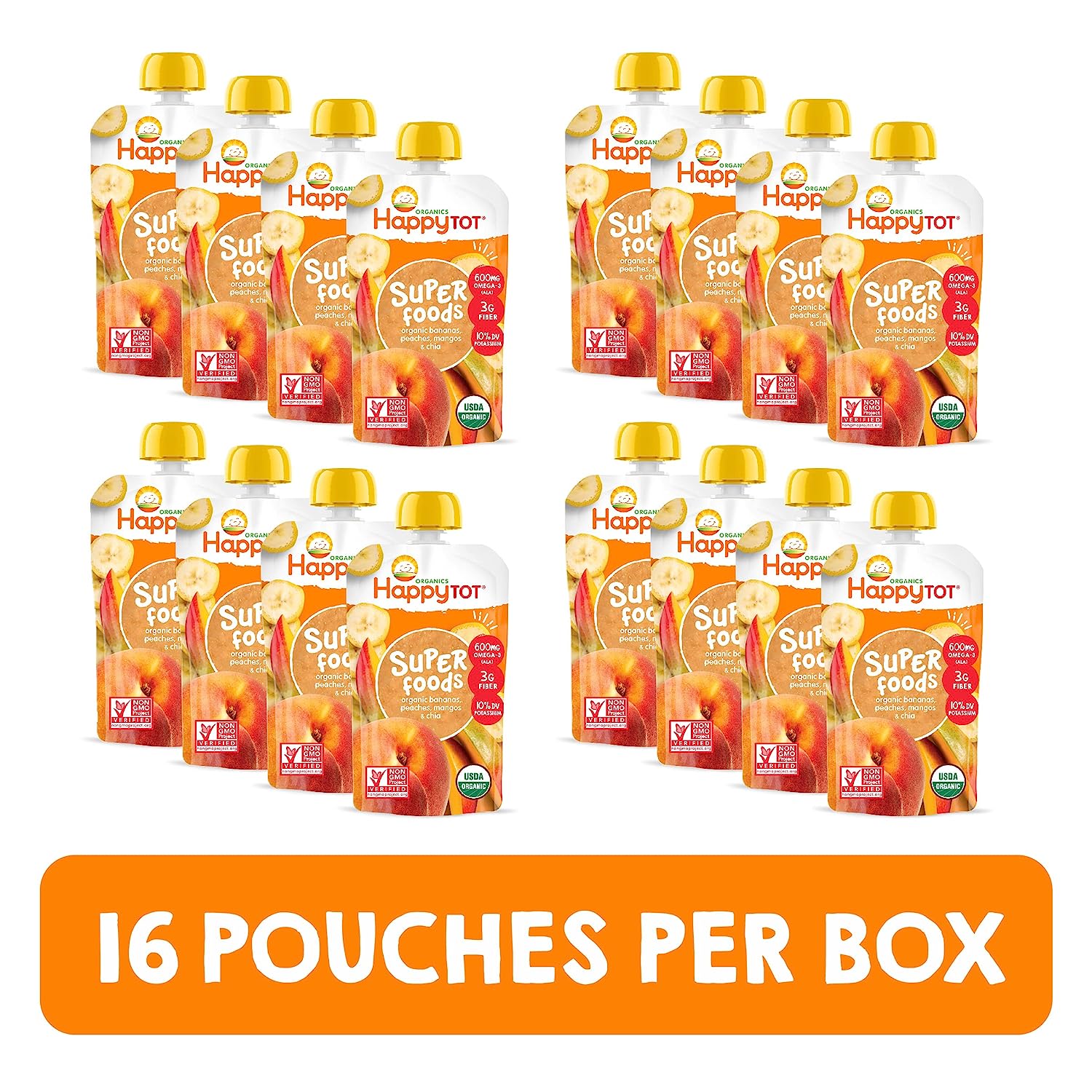 HAPPYTOT Organics Super Foods Stage 4, Super Foods Variety Pack, 4.22 Ounce Pouch (Pack of 16) packaging may vary