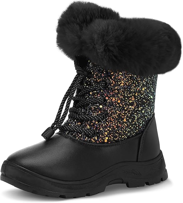 K KomForme Girls Glitter Snow Boots Kids Bungee Lacing Warm Faux Fur-Lined Anti-Slip Outdoor Winter Shoes Toddler/Little Kid/Big Kid